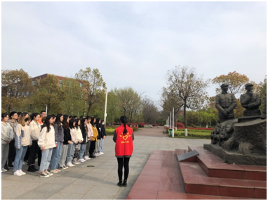 “盐粒子”青松宣讲团利用每周三下午的课余时间,义务值班,轮流在铁军广场为同学讲解。宣讲团成员还将新四军故事和党史知识融入宣讲中。