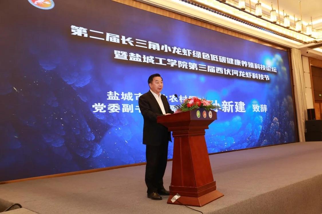 盐城市农业农村局党委副书记、副局长孙新建在致辞中指出:科技创新是渔业发展的第一动力,我们要以此次论坛为重要契机,全面了解、深刻掌握小龙虾产业的前沿动态、高端成果,强化科技创新支撑,推进绿色转型发展,努力推动“十四五”渔业高质量发展迈上新台阶。
