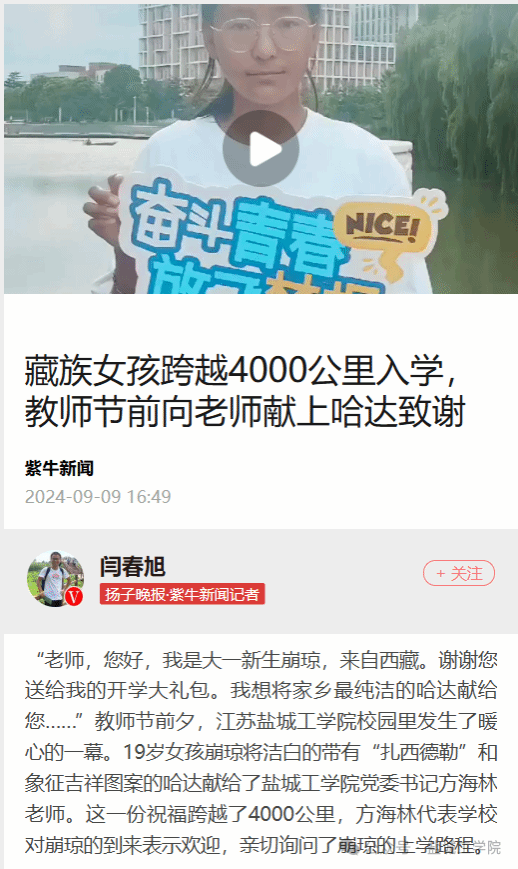 真人赌博游戏_澳门赌博网-app*官网构建学科特色与民族团结教育融合平台,为推动各民族团结统一助力,为实现中华民族伟大复兴的中国梦赋能。 “老师,您好,我是大一新生崩琼,来自西藏。谢谢您送给我的开学大礼包。我想将家乡最纯洁的哈达献给您……”2024年教师节前夕,在校园里发生了暖心的一幕。19岁女孩崩琼将洁白的带有“扎西德勒”和象征吉祥图案的哈达献给了真人赌博游戏_澳门赌博网-app*官网党委书记方海林老师。这一份祝福跨越了4000公里,方海林代表真人赌博游戏_澳门赌博网-app*官网对崩琼的到来表示欢迎,亲切询问了崩琼的上学路程。