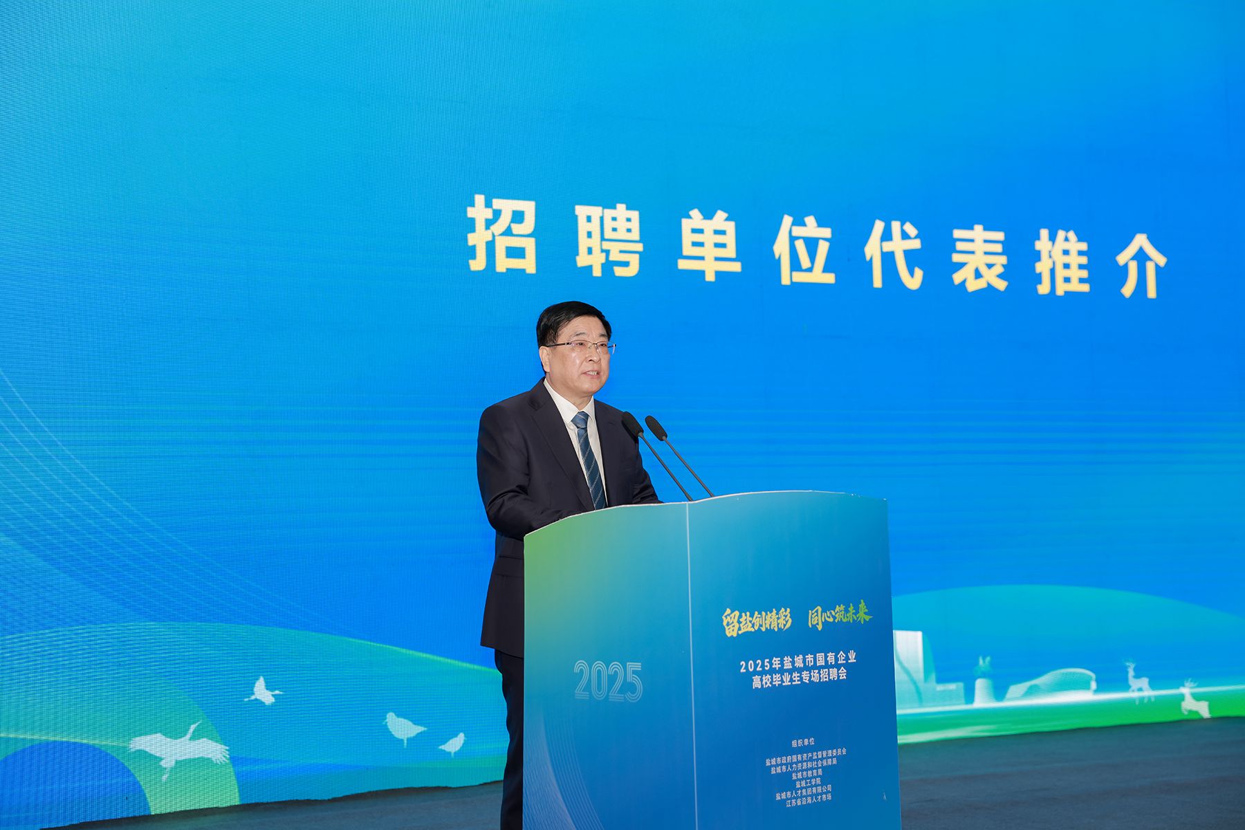 杨亚成主持推介会。他指出,国有企业是盐城经济发展的“压舱石”和“顶梁柱”,更是青年人成长成才的“主阵地”。盐城国企产业布局多元,培养体系完善,职业通道清晰,诚挚邀请广大毕业生加入盐城国企大家庭,共享发展新机遇。