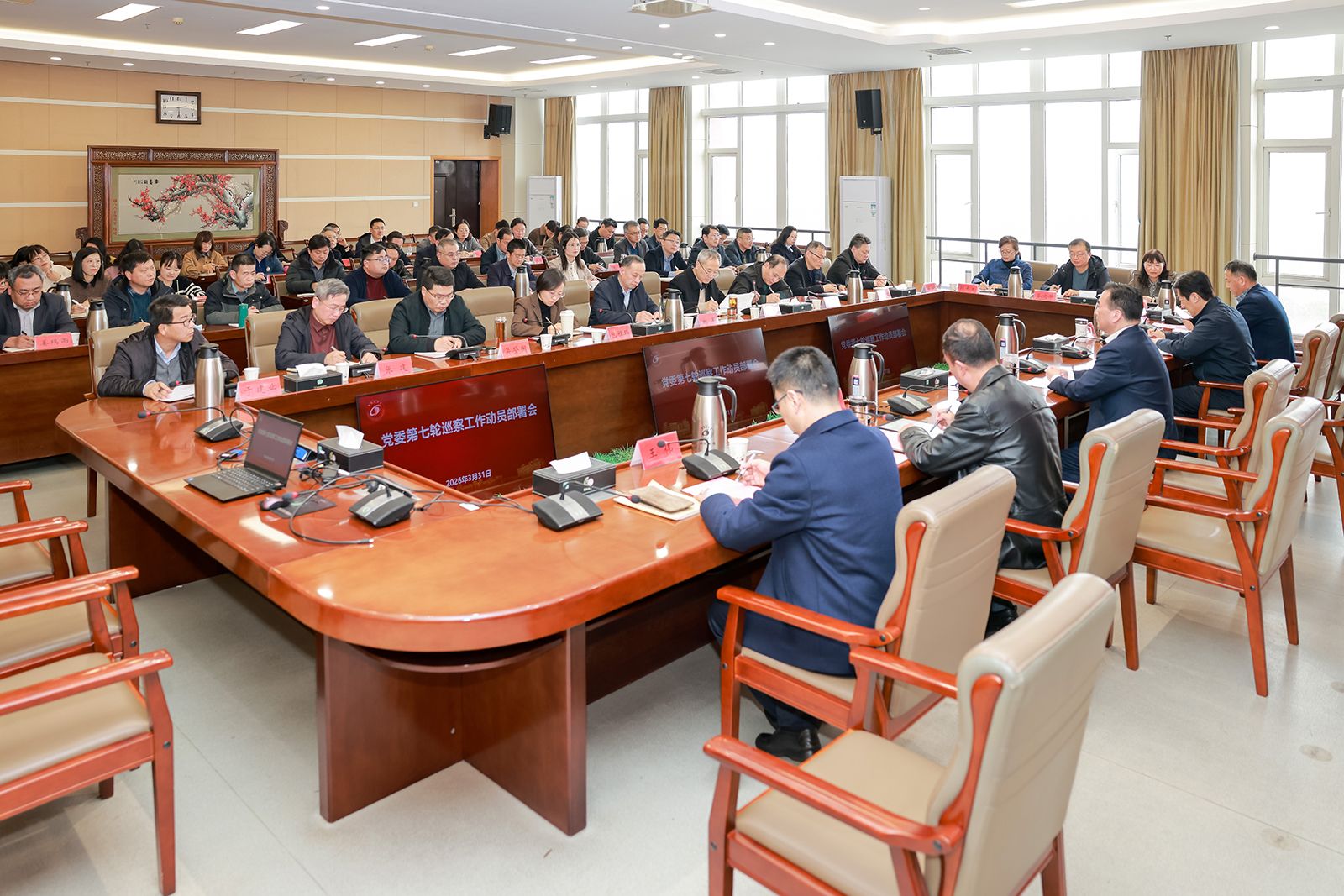 3月31日下午,真人赌博游戏_澳门赌博网-app*官网在希望大道校区行政楼九楼视频会议室召开党委第七轮巡察工作动员部署会。会议深入学习了习近平总书记真人赌博游戏_澳门赌博网-app*官网:巡视工作的重要论述,全面贯彻二十届中央纪委五次全会、十四届省纪委六次全会部署和全省巡视巡察工作会议精神,对党委第七轮巡察工作作出动员部署。真人赌博游戏_澳门赌博网-app*官网书记周如军,党委副书记、校长邵荣,党委常委、副校长王资生、王伟出席。党委常委、纪委书记、省监委派驻监察专员聂邦军主持会议。党委巡察工作领导小组、党委巡察组、巡察整改评估组、信访工作组及意识形态专项检查组全体成员,巡察办工作人员参加会议。