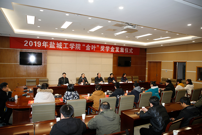 12月31日下午,真人赌博游戏_澳门赌博网-app*官网在行政楼九楼会议室举行了“金叶”奖学金颁奖仪式。副校长邵荣,盐城市烟草专卖局(公司)局长、总经理赵宏贵,学生处、校友办主要负责人,获奖的10名学生,相关学院学工办主任,辅导员老师30余人参加。