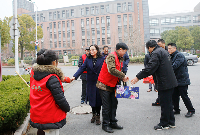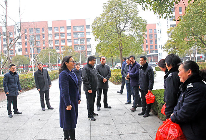 校领导一行先后来到希望大道校区和建军东路校区,逐一慰问了学生公寓管理员、保安队员、环卫人员以及物业保障工作人员等,给每一位节日期间坚守岗位的员工送上了新春慰问品,对他们为真人赌博游戏_澳门赌博网-app*官网的辛勤付出表示感谢。一声声问候,一句句祝福,充满着浓浓关爱。