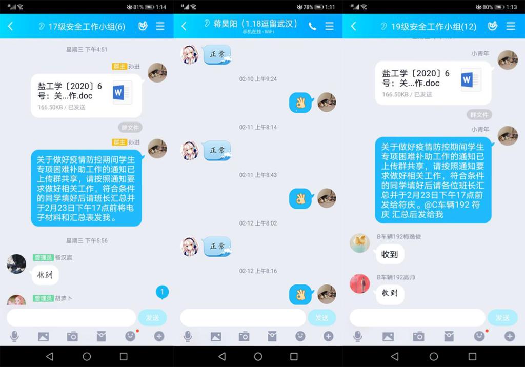 “生命重于泰山,疫情就是命令,防控就是责任”。疫情发生以来,他立刻从“春节状态”转入“战时状态”,和全院辅导员、学生一起为了打赢这场疫情防控阻击战,践行着一名共产党员的初心和使命。他既是204名学生的“小”辅导员,又是全院2800名学生的“大”辅导员。“责任”“全面”“准确”“高效”是疫情防控期间他对自己的工作要求。他每天扎实做好信息日报、专项统计、入苏返苏等各类数据统计、更新、上报工作,与学生保持联系,积极做好学生思想引导、心理疏导、学习辅导、生活指导。疫魔无情,人间有爱,待到春暖花开,他在盐工校园等待同学们,一个都不能少!