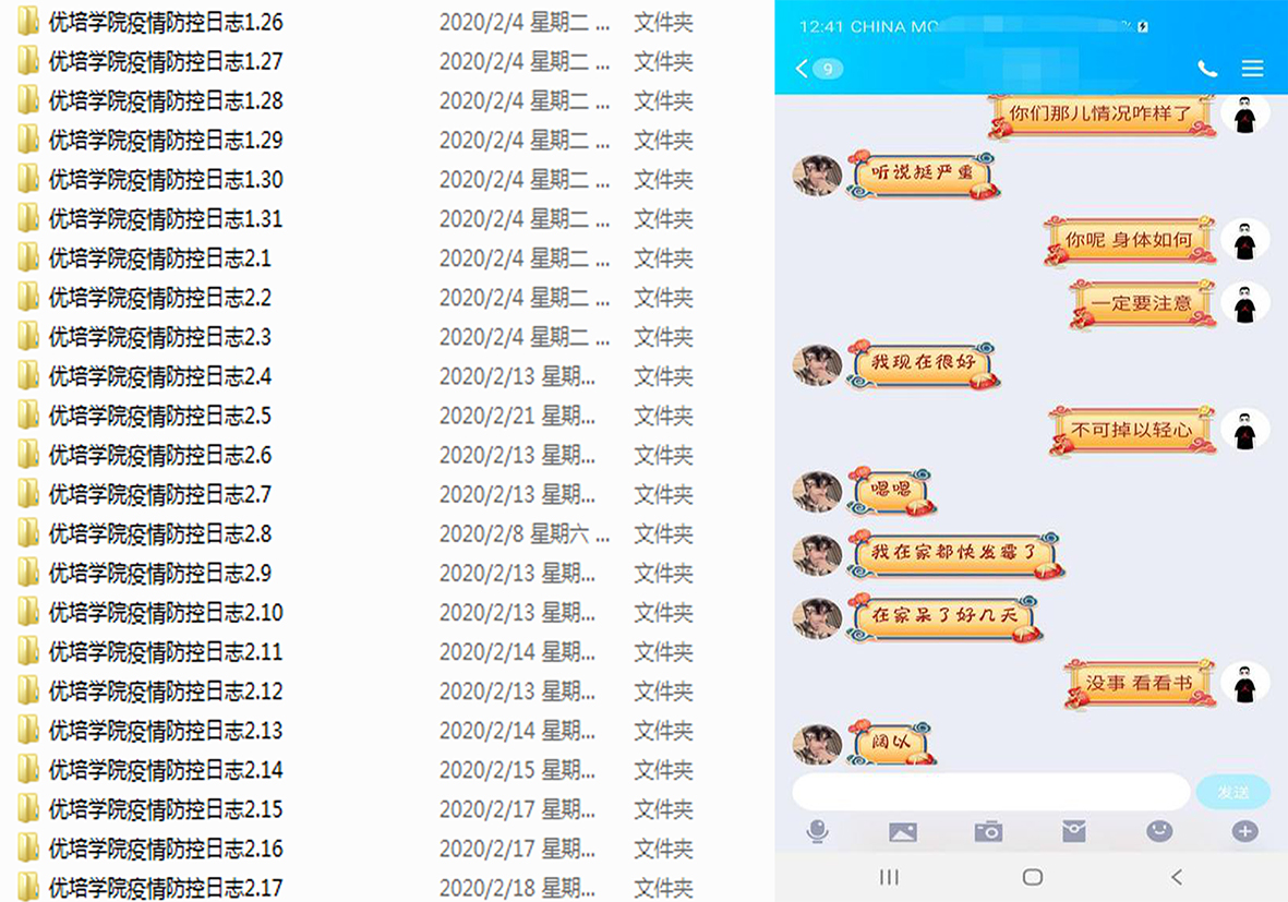 疫情就是命令,防控就是责任。新冠肺炎疫情发生以来,真人赌博游戏_澳门赌博网-app*官网辅导员第一时间响应、第一时间行动、第一时间落实,充分发扬斗争精神,时刻保持战时状态,全力帮扶指导学生普遍关心的考研复试、就业创业、心理咨询、生涯规划,千方百计保障学生成长“不掉线”。纵然远隔千里,依然把爱和温暖送到学生身边,构筑起坚强的抗击疫情工作阵地,践行着教育者立德树人的使命和担当。