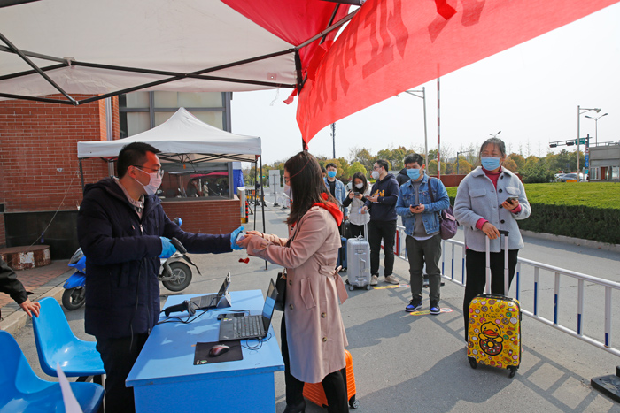 “同学,你好,你的手续已办完,欢迎回到美丽的盐工校园!”伴随着现场工作人员的一句亲切问候,“返校”的学生完成了所有开学报到手续,在志愿者的引导下有序进入校园。