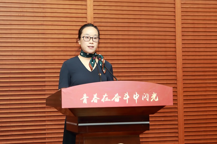 校“五四红旗团委标兵”代表、机械优集学院徐潘虹老师发言