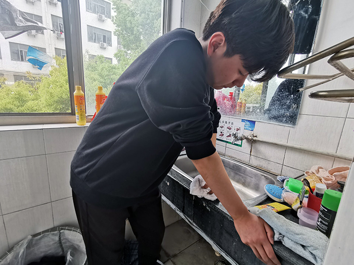 各学院认真配合,大力宣传,动员全体在校学生参加。各学生宿舍成员分工劳动,各负其责,在寝室长的带领下,宿舍成员都积极主动的投入到宿舍的卫生清理之中。同时,学生党员充分发挥先锋模范作用,主动协助保洁阿姨细致清理宿舍公共区域如公寓楼道、一楼架空层等。经过为期三天的劳动,同学们对地面、学生床铺、桌面摆设、墙面、洗漱池等在内的宿舍环境做一次全面大扫除。