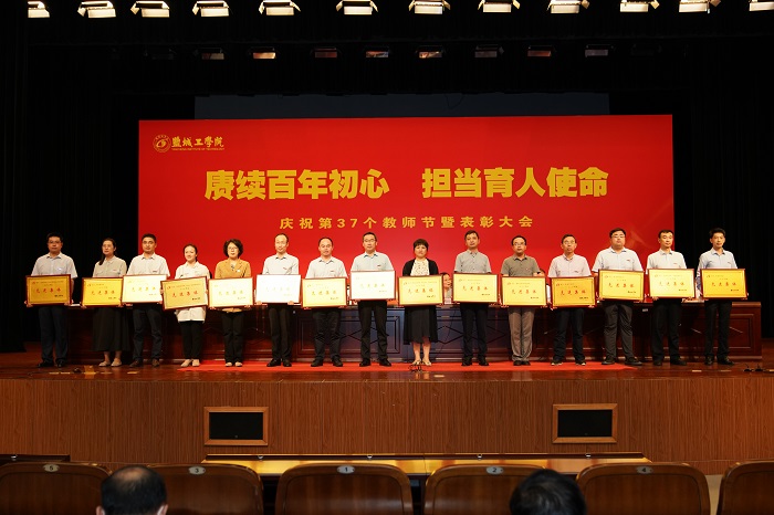 会上,学生向从教30年教职工代表献花。学生代表、盐城市优秀共青团员、校十佳青年志愿者、校三好学生、校团委学生兼职副书记、人文社会科学学院B中文181班许欣雨同学致感谢词。优秀教师代表、化学化工学院蔡照胜教授分享自己的教育教学经验和感悟。先进集体代表、土木工程学院院长吴发红交流了学院教育教学工作的务实举措。