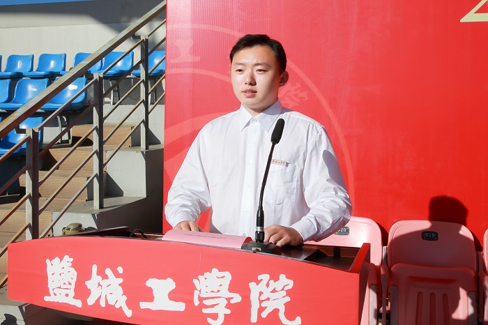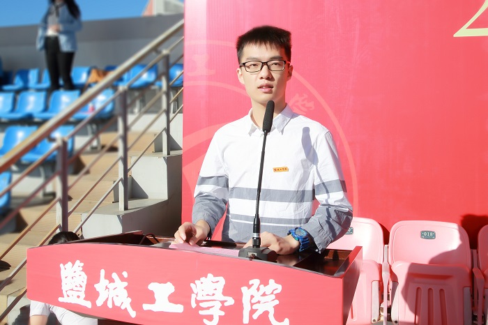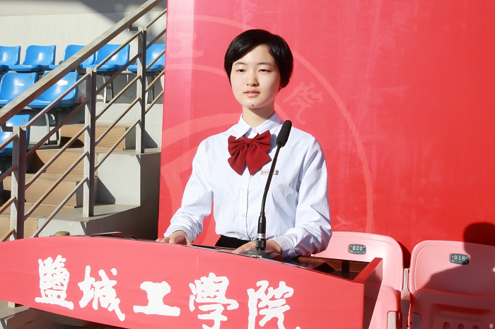 高年级学生代表、“江苏省优秀共青团员”获得者、校学生会执行主席、土木工程学院B建筑181班韦琰霖同学发言