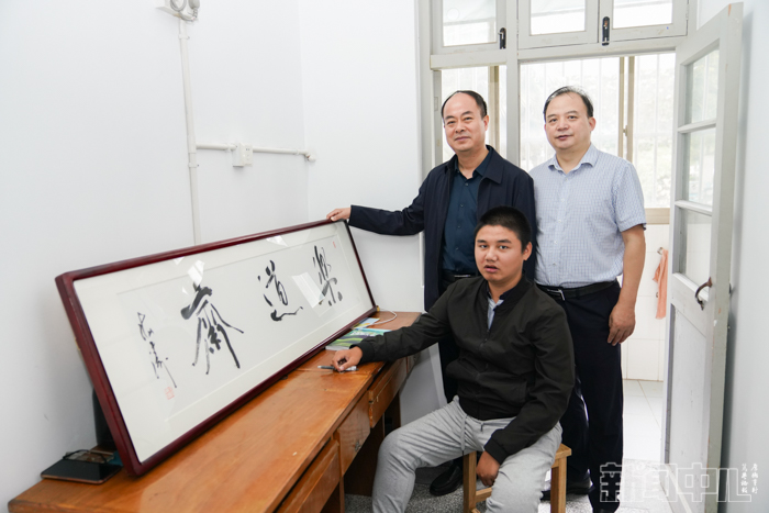 在宿舍,邵荣与夏唯壹亲切交谈,询问他的身体状况,了解他来校后的学习生活情况,并嘱咐他遇到困难及时向老师反映,真人赌博游戏_澳门赌博网-app*官网和学院会尽力帮助解决。邵荣对夏唯壹自立自强、奋发向上的精神表示肯定,同时赠送由邵荣起名、徐海涛老师执笔的书法作品“乐道斋”,勉励他以积极乐观的心态面对困难与挫折,坚守崇高信仰、坚定必胜信念、坚决追求真理、坚持自立自强,走出自己的成功道路。