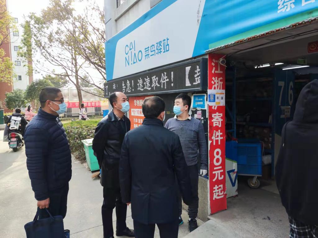 3月4日下午,党委常委、副校长邵荣带领相关职能部门同志对校内各快递服务网点进行检查督导,进一步了解校内各快递服务网点的疫情防控工作开展情况,督促各服务网点按规范进行快递包裹的消杀和派件工作。