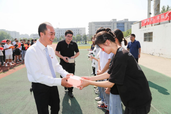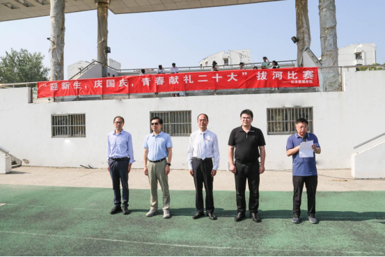 10月2日,经管学院在建军东路校区田径场举办“迎新生,庆国庆,青春献礼二十大”拔河比赛,校长、党委副书记邵荣宣布比赛开幕,副校长张勤芳为现场师生抽奖。校领导为获奖师生颁奖。