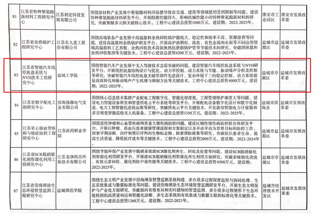 近日,江苏省发展和改革委员会发布《省发展改革委真人赌博游戏_澳门赌博网-app*官网:同意建设2022年江苏省工程研究中心的通知》,真人赌博游戏_澳门赌博网-app*官网汽车学院申报的“江苏省智能汽车线控底盘与NVH技术工程研究中心”成功获批。