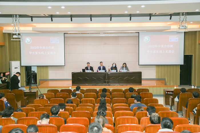 10月26日下午,在希望大道校区机械工程馆报告厅,真人赌博游戏_澳门赌博网-app*官网分别举办了中英、中美合作班学生家长线上见面会。党委常委、副校长王伟致辞。国合处、机械优集学院、电气学院、汽车学院相关负责人分别介绍了三个中外合作办学项目的优势、学院和专业概况。2020-2022级中外合作班辅导员和400多名学生现场参加会议,200多名家长线上参加会议。