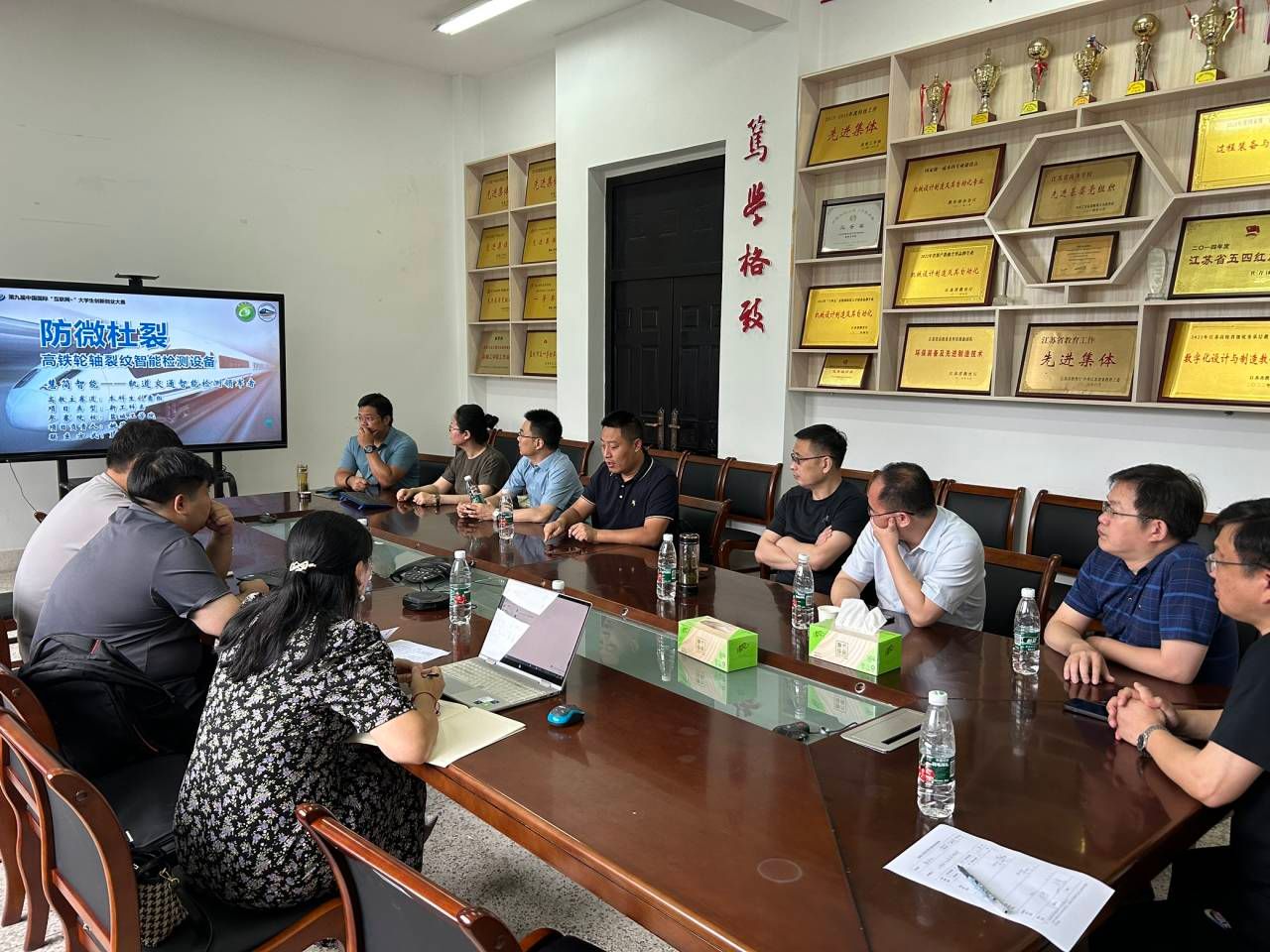 在本科生创意组,由机械学院申报,曾勇、方璇、徐宁三位老师指导,姚书恒、丁郁苗、赵晨羽等学生共同完成的“防微杜裂-高铁轮轴裂纹智能检测设备”项目获得了二等奖。