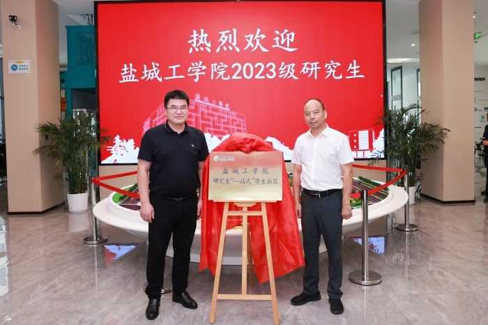 党委常委、副校长张勤芳,盐城高新区党工委副书记李晓东为研究生“一站式”学生社区揭牌
