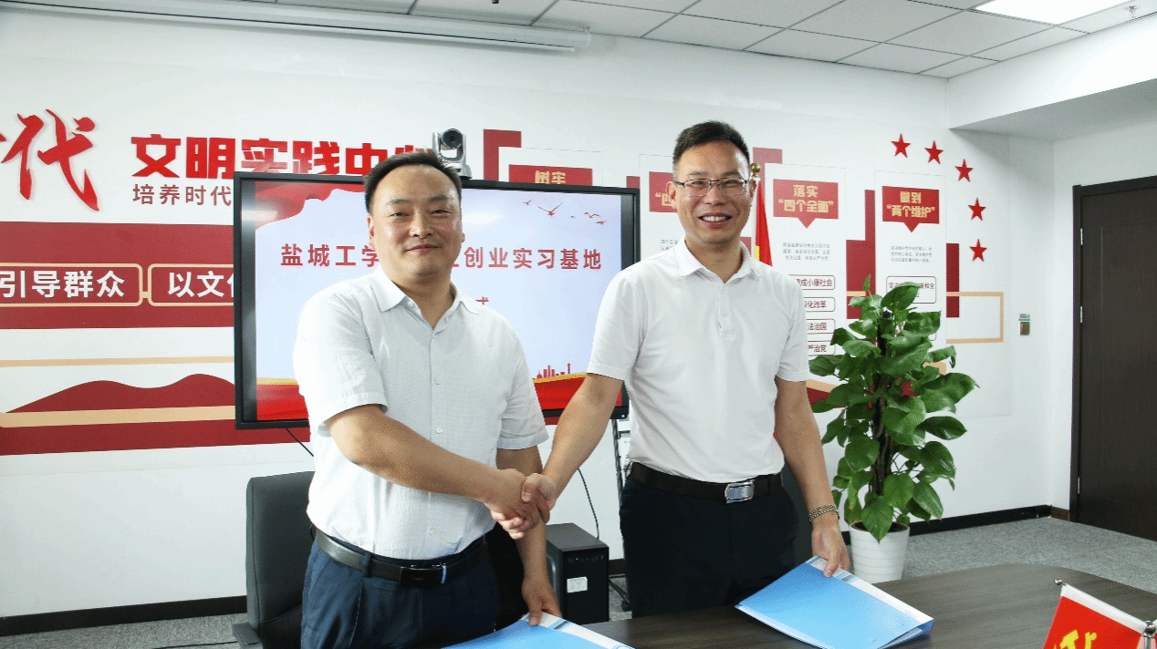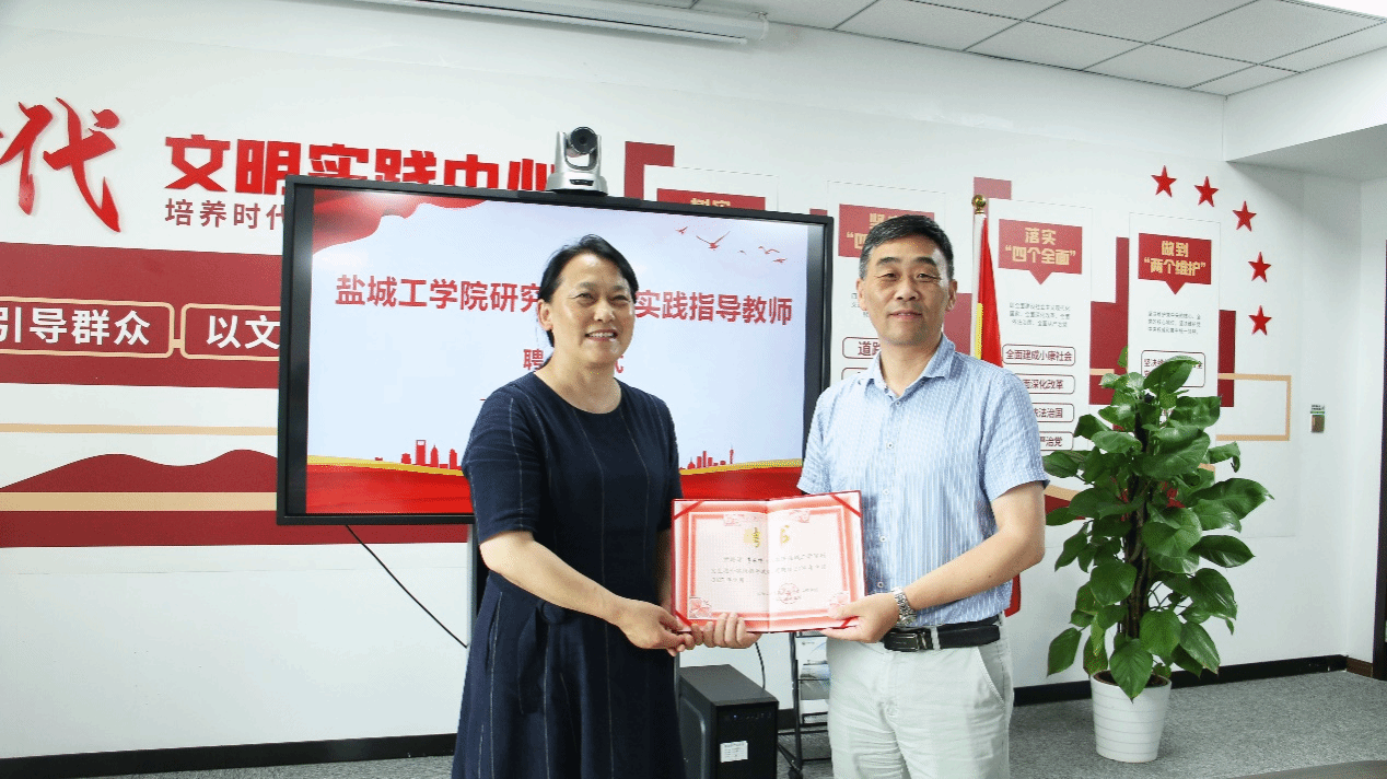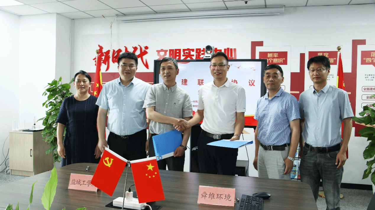 张勤芳为江苏舜维环境工程有限公司大学生就业创业实习基地授牌,徐新华颁发研究生校外实践指导教师聘书,陈阳与企业党支部签订党建联盟协议,杨百忍与企业签订大学生就业创业实习基地共建协议。