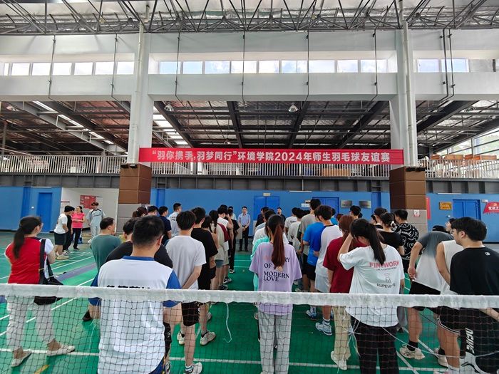 为推动学院体育文化建设,鼓励师生积极参与体育运动,弘扬体育精神、展现青春风采、丰富课余生活,为即将毕业的2024届学子留下美好而又难忘的回忆,6月11日下午,真人赌博游戏_澳门赌博网-app*官网环境学院举办了主题为“羽你携手、羽梦同行”的师生羽毛球友谊赛。副校长、盐城市政协副主席丁成出席活动并宣布比赛开幕。真人赌博游戏_澳门赌博网-app*官网办公室主任顾红,环境学院党总支书记陈阳、院长陈天明等60余名师生报名参加。