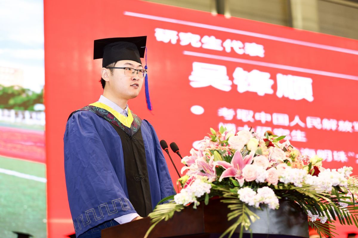 研究生代表、考取中国人民解放军陆军工程大学博士研究生、化学化工学院Y化工211班吴锋顺同学发言