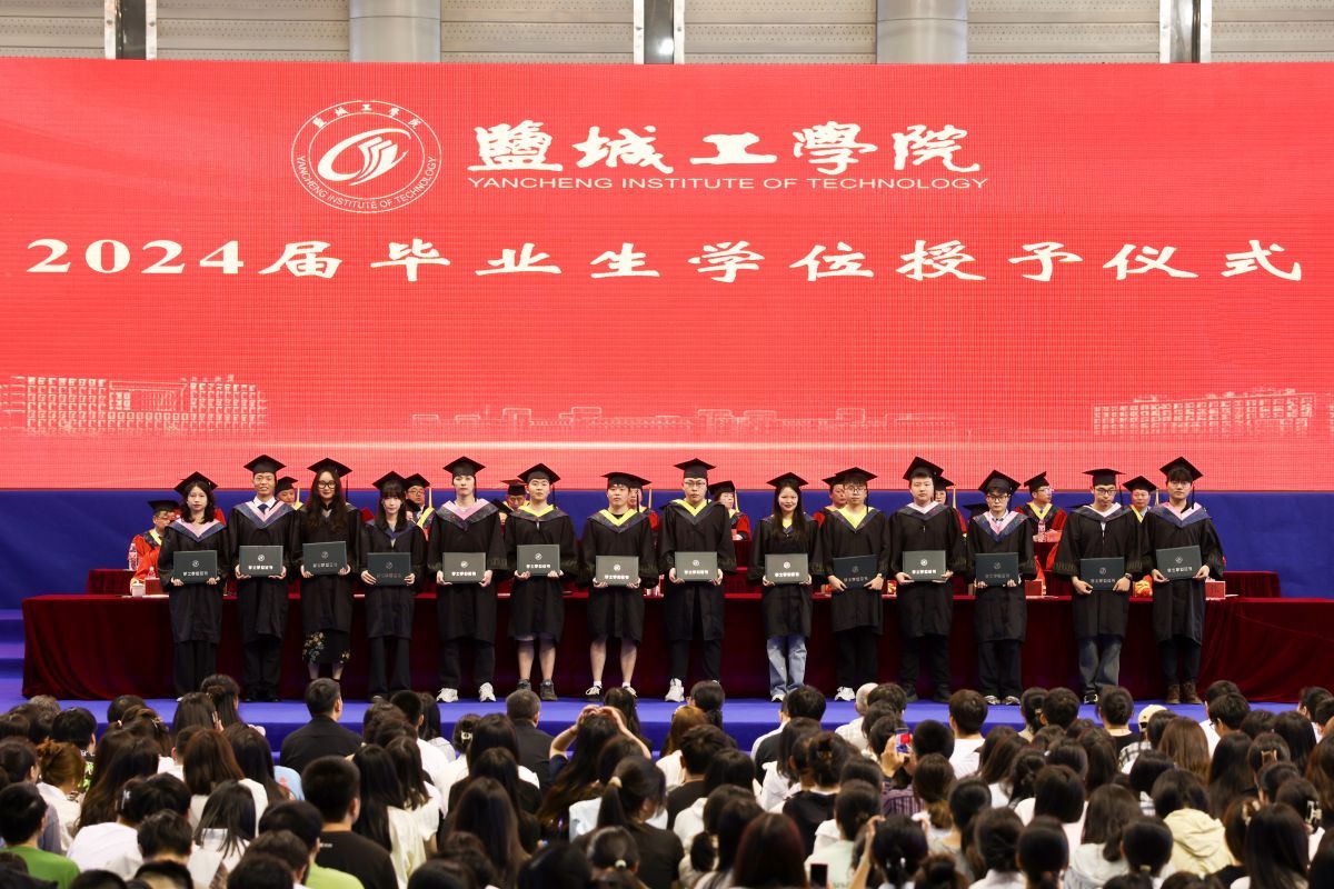 薛浩宣读2024年度江苏省“优秀毕业生”表彰决定;王资生宣读研究生硕士学位授予决定和2024届优秀毕业研究生表彰决定;王伟宣读本科生学士学位授予决定和2024届优秀本科毕业生表彰决定。主席台校领导为优秀毕业生代表颁发荣誉证书,拨穗、正冠并授予学位。