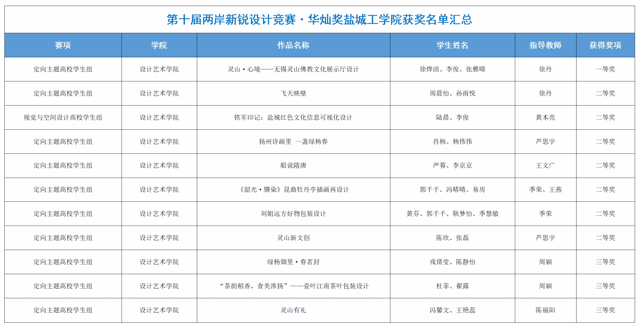 近日,第十届两岸新锐设计竞赛·华灿奖落下帷幕。真人赌博游戏_澳门赌博网-app*官网设计艺术学院师生团队共获得国家级奖项11项。其中,在环境设计方向组,徐丹、陈福阳二位老师指导的学生团队荣获一等奖1项、二等奖1项、三等奖1项;在视觉传达设计方向组,王文广、季荣、黄本亮、芦思宇、周颖等老师指导的学生团队荣获二等奖6项、三等奖2项。