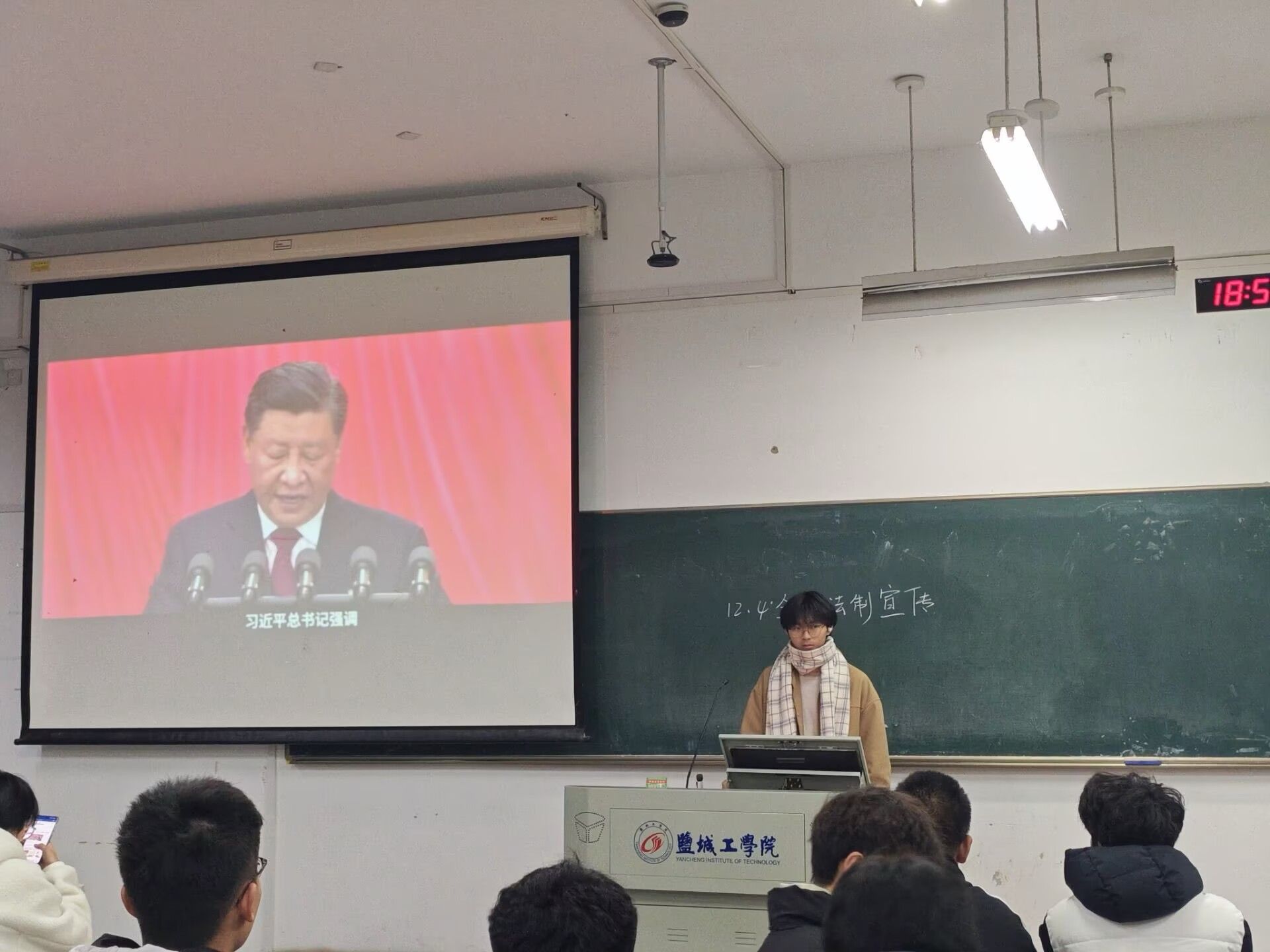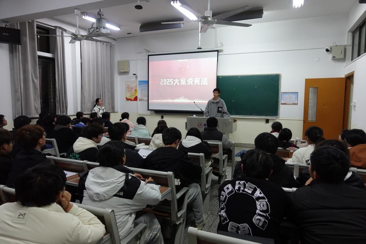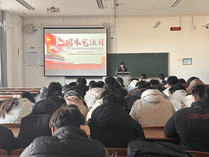 12月1日至3日,学院开展“普法宣传进班级”活动,组织各班级团支部书记担任主讲人,深入班级面向全体学生开展宪法宣讲。宣讲围绕宪法的地位作用、发展历程、基本原则和核心内容,结合现实案例,深刻阐释了宪法在保障公民基本权利、规范国家权力运行、推动全面依法治国和社会主义现代化建设中的根本保障作用,切实增强了同学们的法治观念和规则意识。