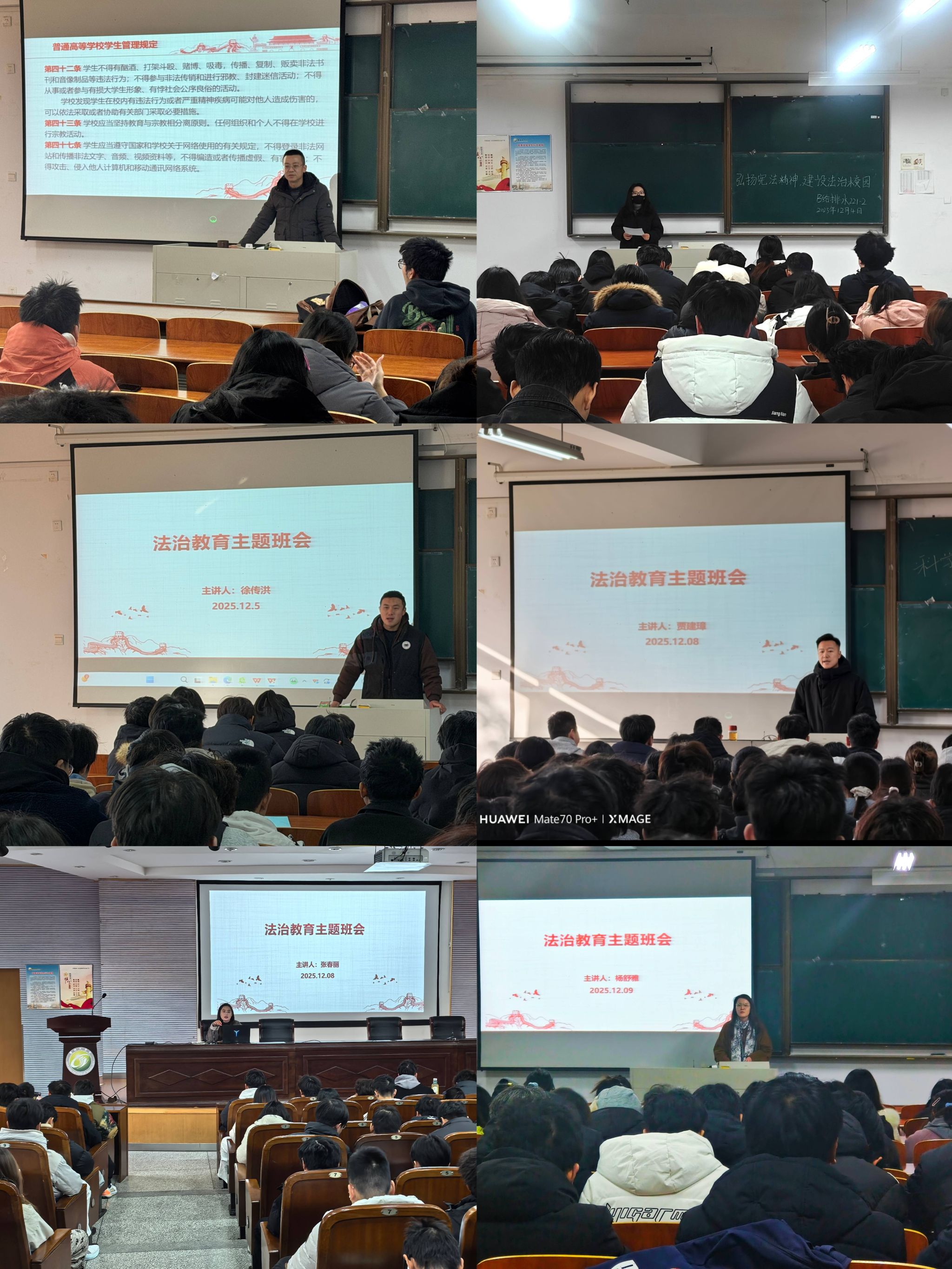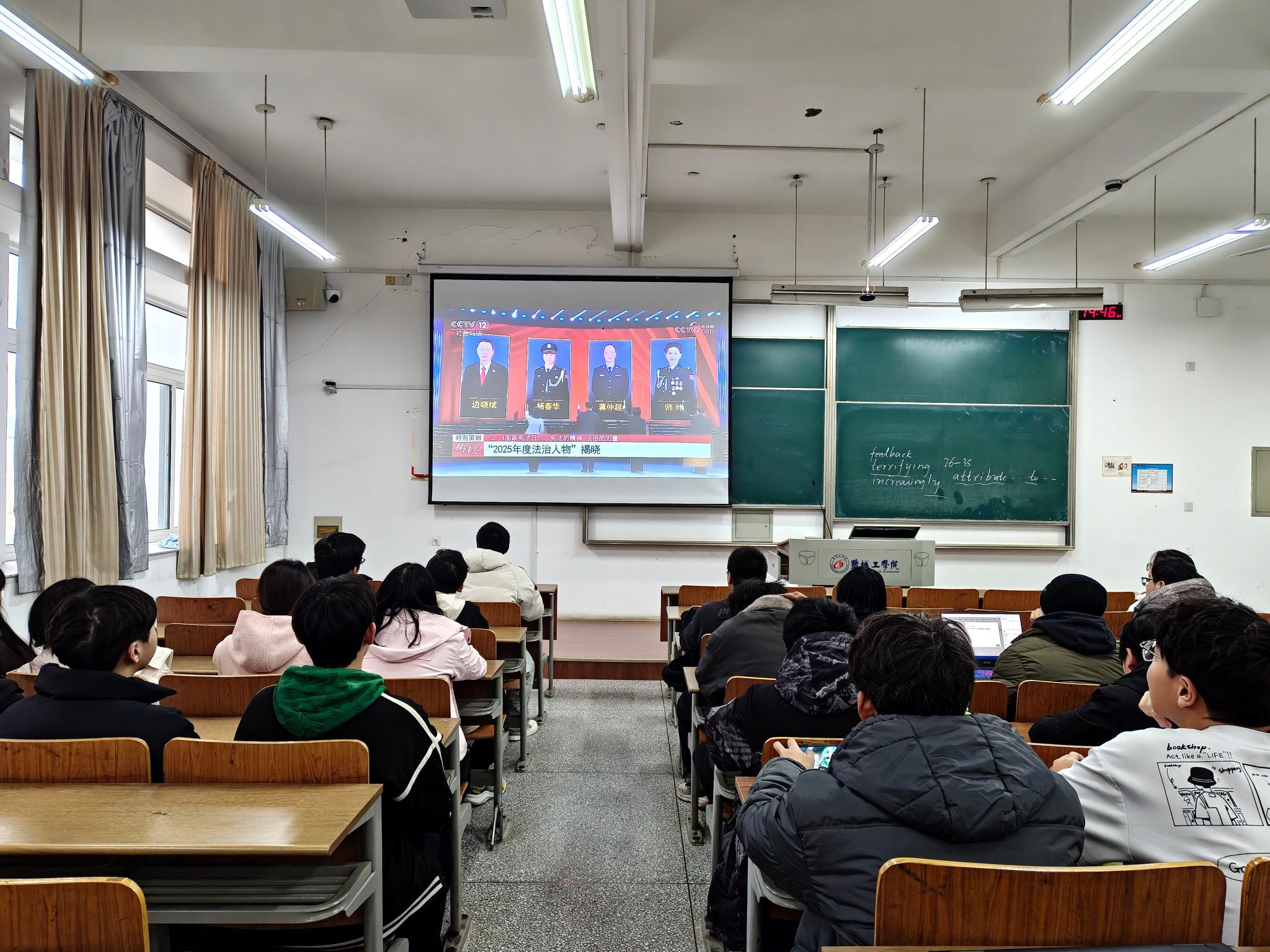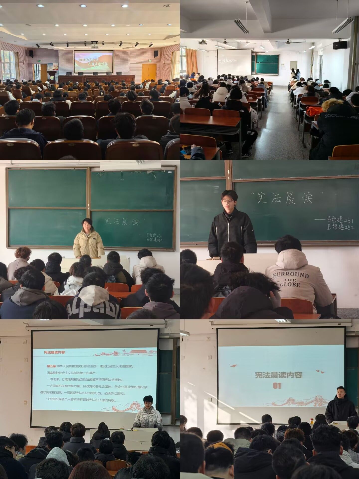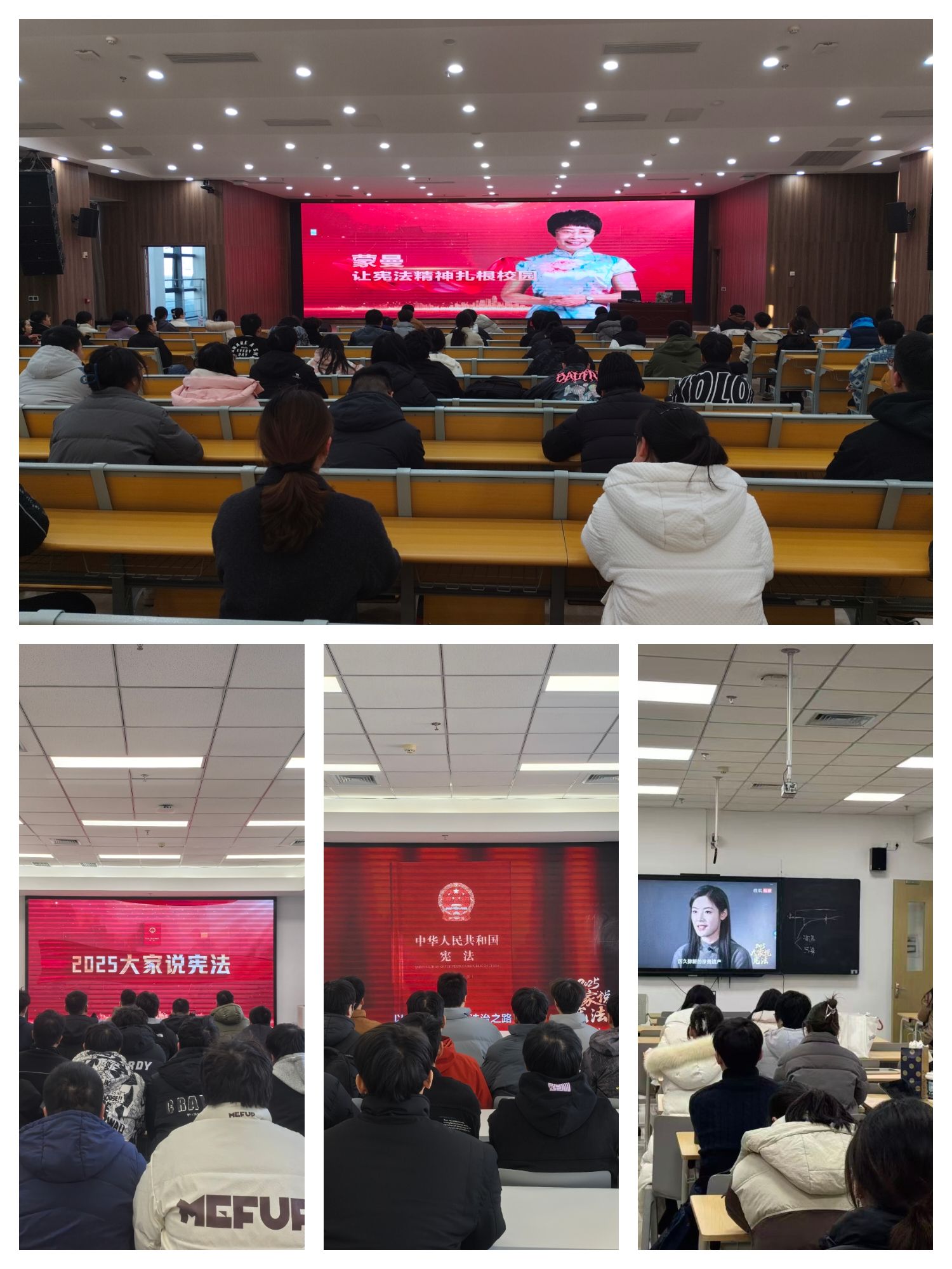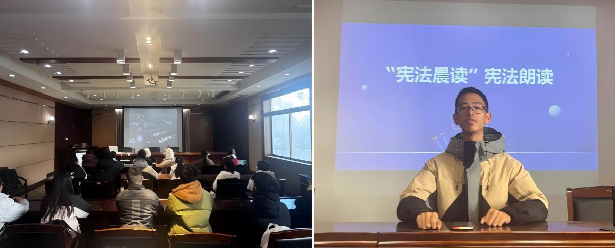 12月4日上午,学院组织大一大二全体学生在线同步收看教育部全国青少年普法网“宪法晨读”活动直播。同时,在行远楼重点实验报告厅开展线下宪法诵读活动,同学们庄严肃立,在铿锵有力的朗读声中深切感受宪法的神圣与威严。活动现场还设置了宪法知识竞答环节,题目紧扣宪法基本原则和公民权利义务,学生们踊跃参与,在互动交流中深化了对宪法知识的理解和掌握。12月4日晚,学院组织在校学生收看“宪法的精神,法治的力量——2025年度法治人物”专题节目,通过学习法治先进人物的感人事迹,进一步激发学生弘扬宪法精神、投身法治实践的热情。