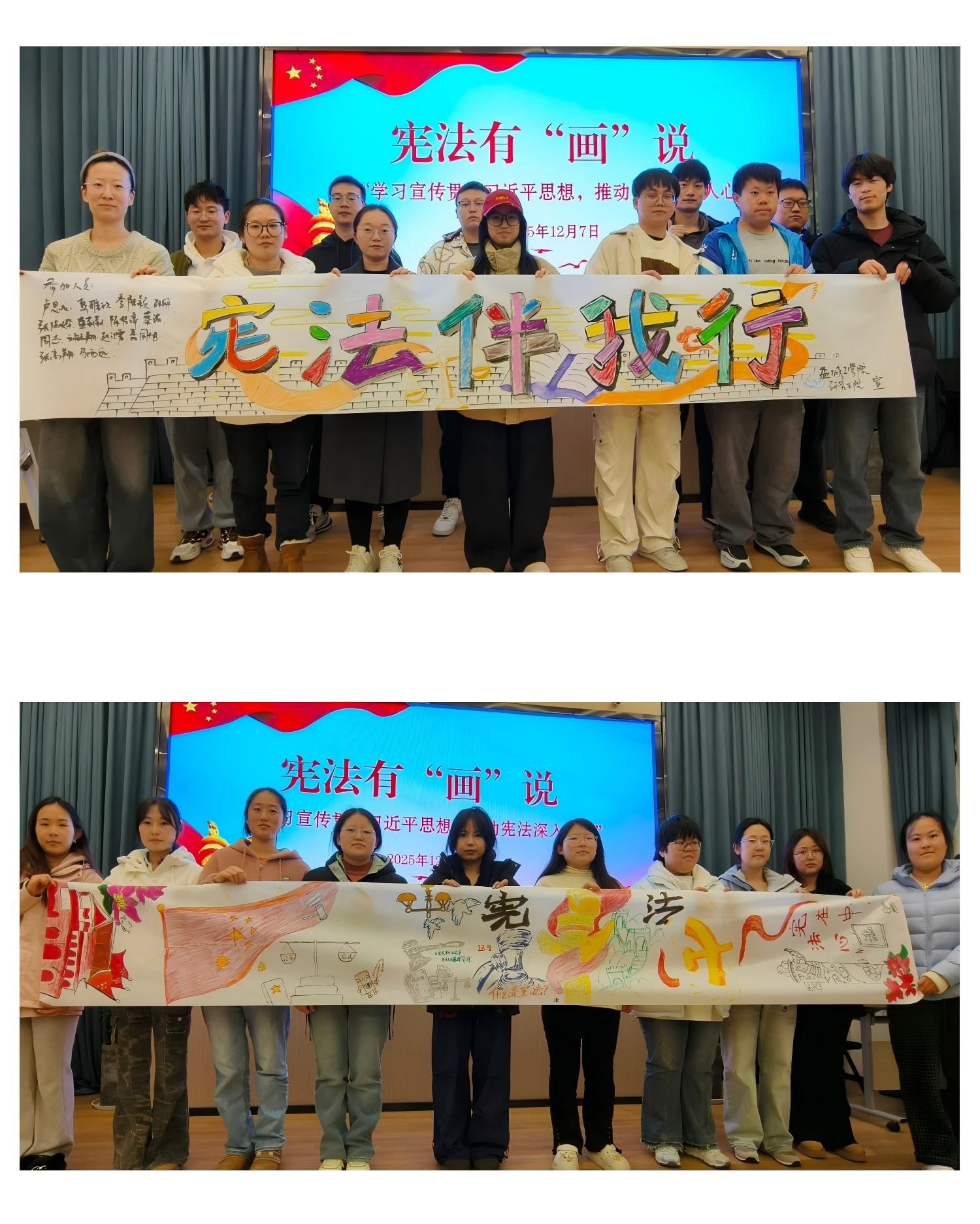 为深入学习贯彻习近平法治思想,切实加强校园法治教育,引导师生树立法治意识、增强法治素养,在“12·4”国家宪法日暨法治宣传月活动期间,土木工程学院精心策划开展系列主题教育活动,通过专题学习、主题班会、作品征集、晨读观影、知识答题等多元形式,让宪法精神浸润校园,让法治理念深入人心。