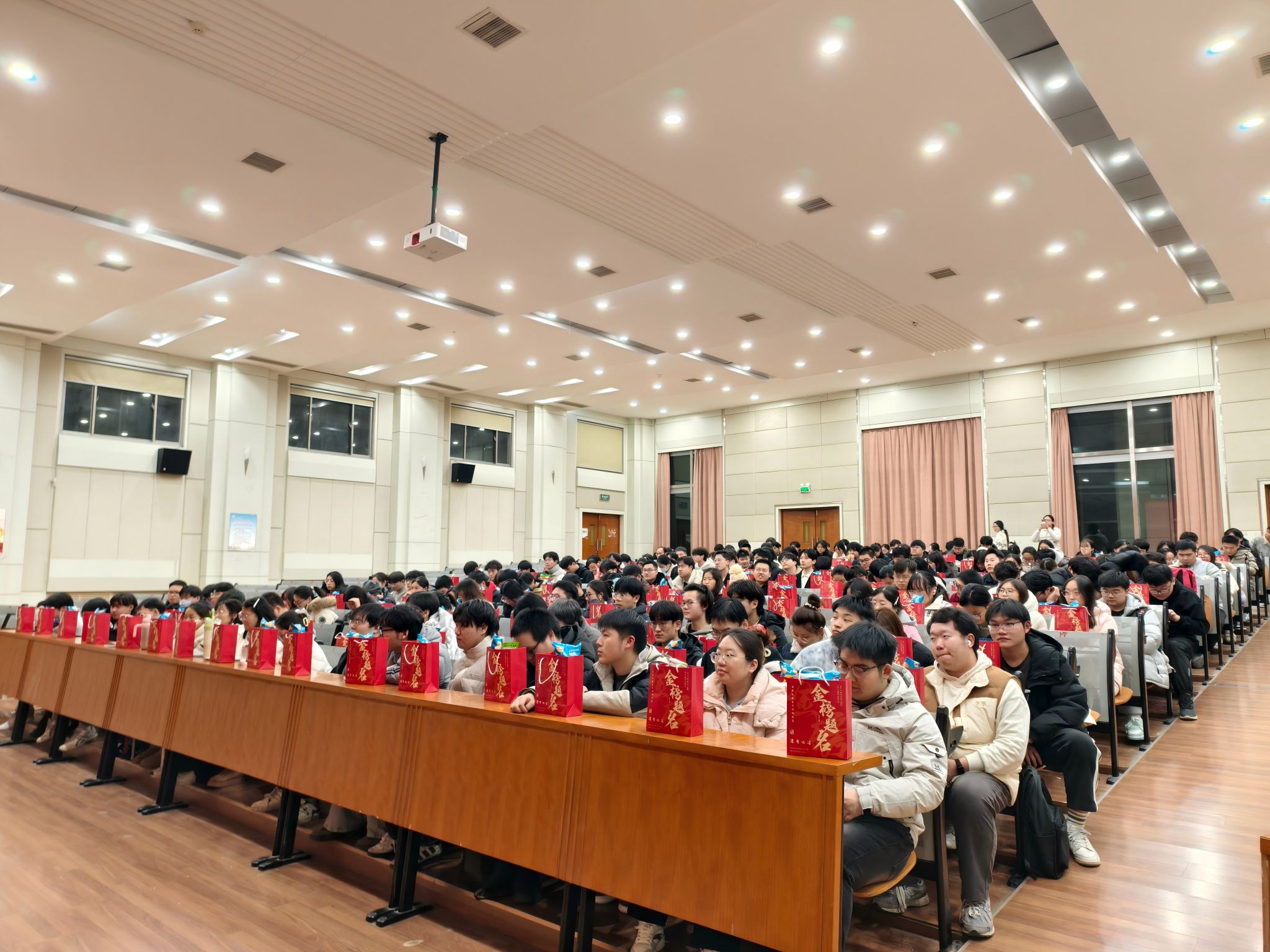 为鼓舞2026届考研学子斗志,缓解备考压力,12月10日晚上,化学化工学院联合“化心筑梦”一站式学生社区在化工楼报告厅举办考研冲刺慰问会。学院党委书记庞辉,副院长祁刚、李红波出席活动,学工办副主任杨立远主持,毕业班辅导员及2026届全体考研学生参加。