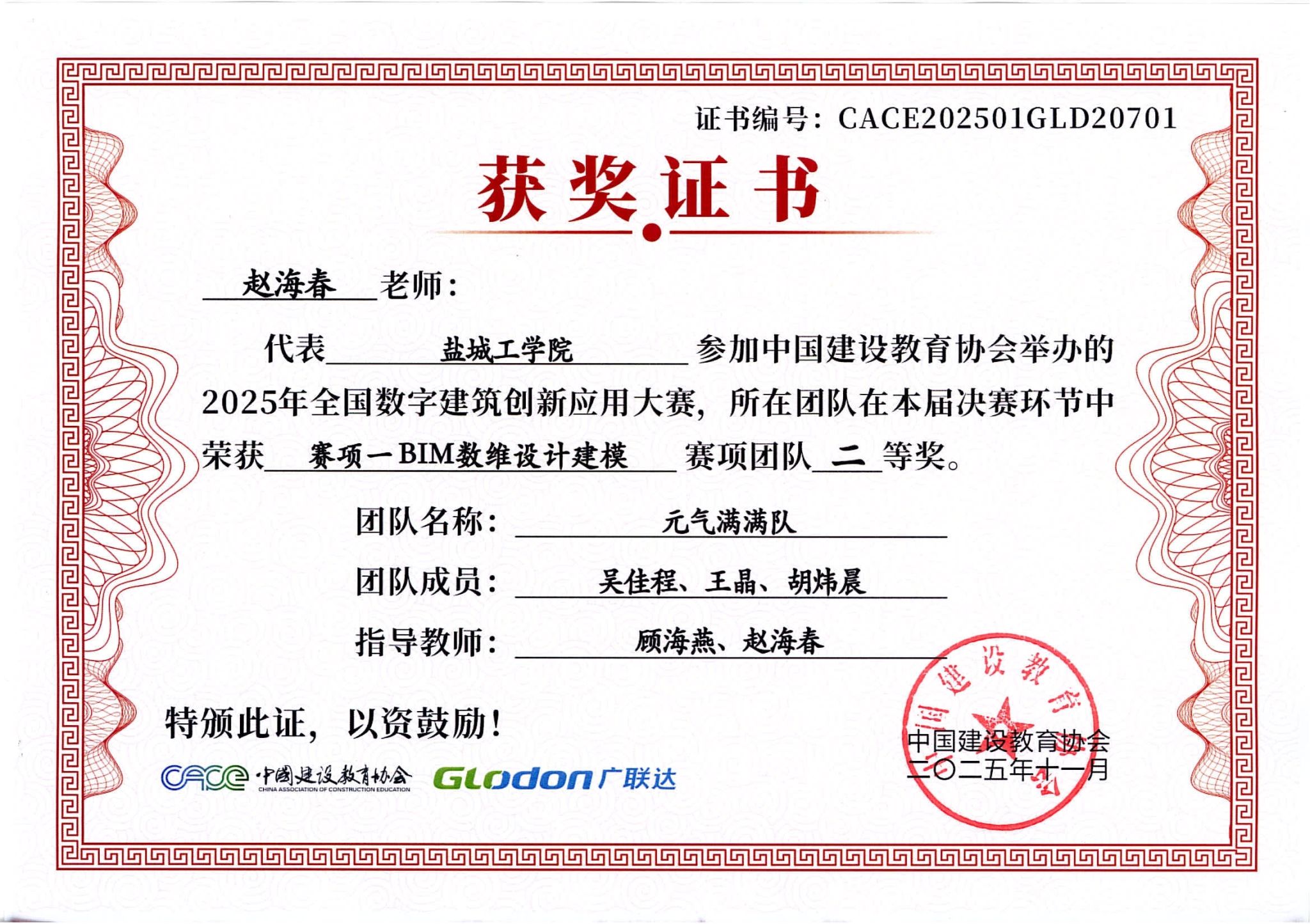本次大赛自2025年5月启动以来,参赛队伍在学院的高度重视和指导老师的精心指导下,以扎实的专业功底、精湛的技术应用和出色的团队协作能力,充分展现土木学院学子的强劲实力与风采。此次成绩的取得,是土木学院坚持“以赛促教、以赛促学、赛教融合”育人理念的生动体现,不仅彰显了学院在数字化建筑教学改革与创新型人才培养方面的显著成效,也极大地激发了学生投身专业学习与实践创新的热情。