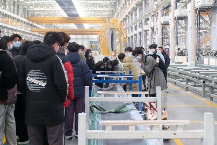 在政校合作双方的精心统筹下,同学们先后走进江苏亨通海能科技有限公司、射阳中车风电叶片工程有限公司、中国质量认证中心射阳新能源创新基地叶片基地及射阳港零碳社区四大代表性单位,沉浸式开展参观交流。