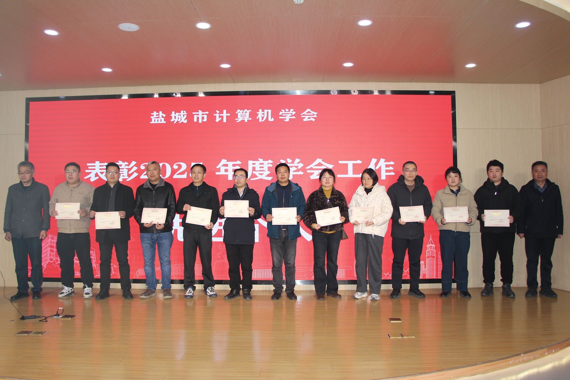 会议期间,对2025年计算机技能应用大赛的获奖代表和2025年学会工作先进个人名单进行了表彰。学会副理事长王海军宣读了2025年计算机技能应用大赛获奖名单,本次大赛由盐城市计算机学会组织,来自盐城的本专科院校、金融系统、卫生系统260余人参加了比赛,根据参赛选手的成绩,产生一等奖6名、二等奖15名、三等奖30名。副理事长宋俊苏宣读了2025年度学会工作先进个人名单。