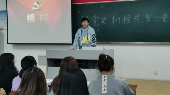 榜样身后的故事让党员同学们深受感动,结合党史学习和观影体会,踊跃发言。一是认为学习党史可以“强”心志,铸就理想信念。陈明明老师说:“榜样的力量是无穷的,他们是这个新时代涌现出的先进人物,是共产党员的先进代表,他们用实际行动诠释了中国共产党人的坚定信念、忠诚担当的精神风采。”二是认为学党史可以“强”本领,锤炼服务精神。B物管181班汪洋结合自己社区防疫事例感叹:“榜样的事迹激励着我们要不断学习新知识,掌握新技能,接受新事物,研究新问题,从各方面着力提升自己的真本领,真正成为一名想干事、能干事、干成事的学生干部。”三是学党史可以“强”担当,增强使命情怀。B会计181班沈彤彤表示:“征途漫漫,惟有奋斗。看完榜样后,我明白誓言不是用来说的,初心和使命也不是用来理解的,而是要融入到我们学习和工作的每一个细节中。”