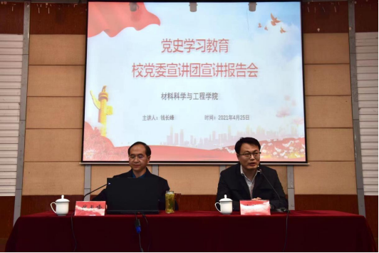 4月25日下午,在北校区五四报告厅,党史学习教育真人赌博游戏_澳门赌博网-app*官网宣讲团成员、马克思主义学院党总支书记钱长锋为材料学院师生作党史教育专题宣讲。学院党委副书记朱凌主持,全体专职辅导员,全体学生党员、发展对象和学生干部等300余人参加。