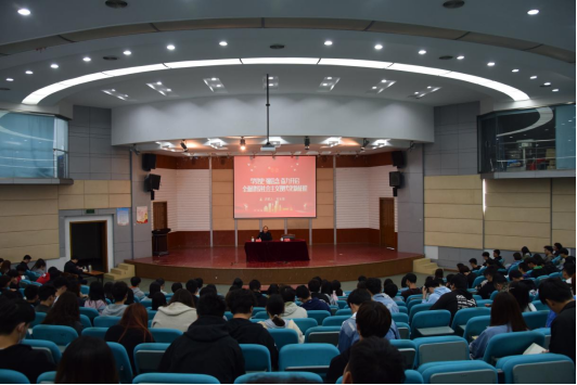 4月25日下午,在南校区润美楼报告厅,真人赌博游戏_澳门赌博网-app*官网常委、宣传部长、党史学习教育真人赌博游戏_澳门赌博网-app*官网宣讲团成员韩雅丽为外国语学院师生作“学党史,强信念,奋力开启——全面建设社会主义现代化国家新征程”党史学习教育专题宣讲。学院党总支书记谷文华主持,学工办负责同志、学院全体学生党员及学生代表等300余人参加。