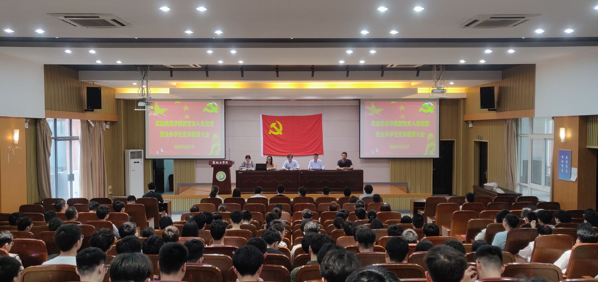 6月2日下午,机械优集学院在希望大道校区机械馆三楼报告厅召开春学期新党员入党宣誓暨全体学生党员教育大会。学院党委书记孙雷出席,党委副书记秦卫兵主持会议,学生支部书记、全体学生党员等200余人参加。