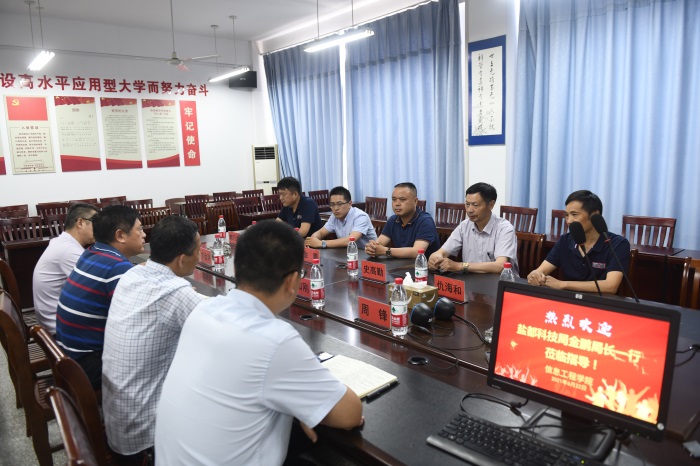 6月22日下午,盐都科技局副局长金鹏、盐城雄鹰精密机械有限公司总经理郭乃宏等一行五人来真人赌博游戏_澳门赌博网-app*官网信息工程学院调研交流。信息学院党委书记刘雨龙、副院长王如刚、光电信息技术研究所成员热情接待。