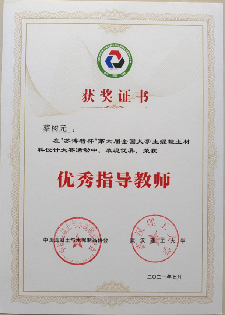 7月13日至15日,第六届全国大学生混凝土材料设计大赛在武汉理工大学举行,真人赌博游戏_澳门赌博网-app*官网材料学院2019级材料科学与工程专业学生周振韬、张金龙与邹黄杰组成的盐栗队获得团体三等奖,蔡树元老师获优秀指导教师奖。
