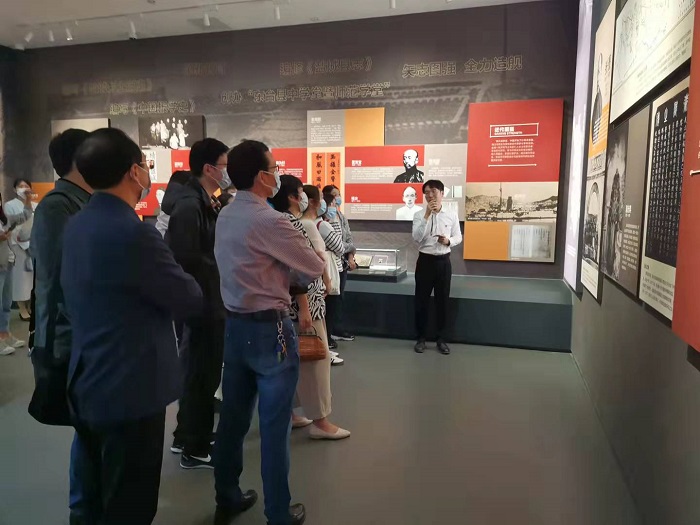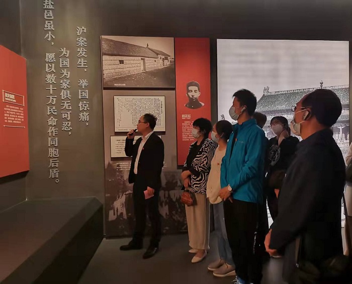 青年教师蔡云晨、李宝、张梦云经过前期精心备课,带领学院全体教师感受盐城的精神坐标——盐城博物馆。他们围绕盐城博物馆内的珍贵藏品和红色文物给大家介绍了盐阜大地上可歌可泣的的革命历史,讲述了盐阜儿女光辉的革命事迹,从过去、现在和未来三个维度给大家展现了一座历史文化名城——盐城。蔡云晨从星火初燃、华中砥柱、会师盐城、重建军部、敌后文化城5个部分介绍了盐城的新四军文化。李宝通过生动的讲述为大家呈现了新四军八路军会师盐城、开辟抗日根据地等生动的革命场景。张梦云重点解说了盐城迎接解放和欢庆胜利的故事。