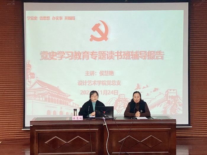 11月24日下午,在润美楼报告厅,设计艺术学院举办党史学习教育专题读书班,邀请校马克思主义学院教师侯慧艳博士作辅导报告。学院党总支书记胡凌霞主持,学院中心组成员、全体教职工、学生党员参加。