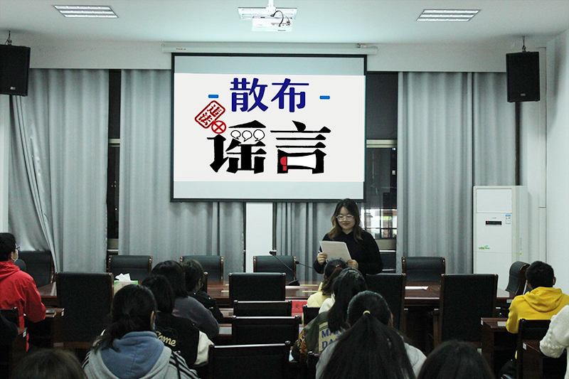 另外,各班辅导员也分批次深入班级召开主题班会,开展防疫法律知识宣讲,讲细、讲透相关法律知识,强化责任意识,与学生签订《疫情防控法律责任告知书》。“造谣传谣动动嘴,辟谣却能累断腿,人人不做捣蛋鬼,勿因冲动而后悔”“行程轨迹莫隐瞒,不给抗疫添麻烦”等脍炙人口的抗疫金句开始在同学中流传。团委学生干部周秀秀还创作出了自己的抗疫顺口溜:“安全第一条,口罩最重要。口罩不戴好,有人把你叫。同学!口罩!”