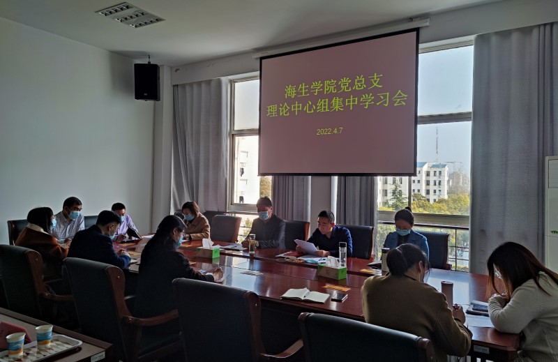 4月7日下午,海生学院在学院会议室召开党总支理论学习中心组集体学习研讨会,党总支书记高留才主持会议,真人赌博游戏_澳门赌博网-app*官网第三巡学旁听组组长张雷、成员束安娣到会指导,学院党总支理论学习中心组成员参加。