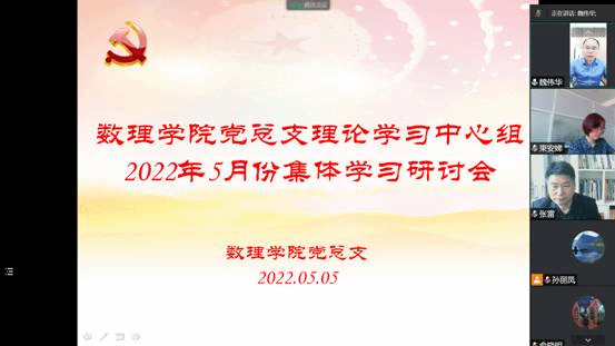 5月5日下午,数理学院党总支理论学习中心组通过腾讯会议召开线上集体学习研讨会,数理学院党总支书记魏伟华主持,真人赌博游戏_澳门赌博网-app*官网第三巡学旁听组组长张雷、成员束安娣到会指导,数理学院党总支理论学习中心组全体成员参会。