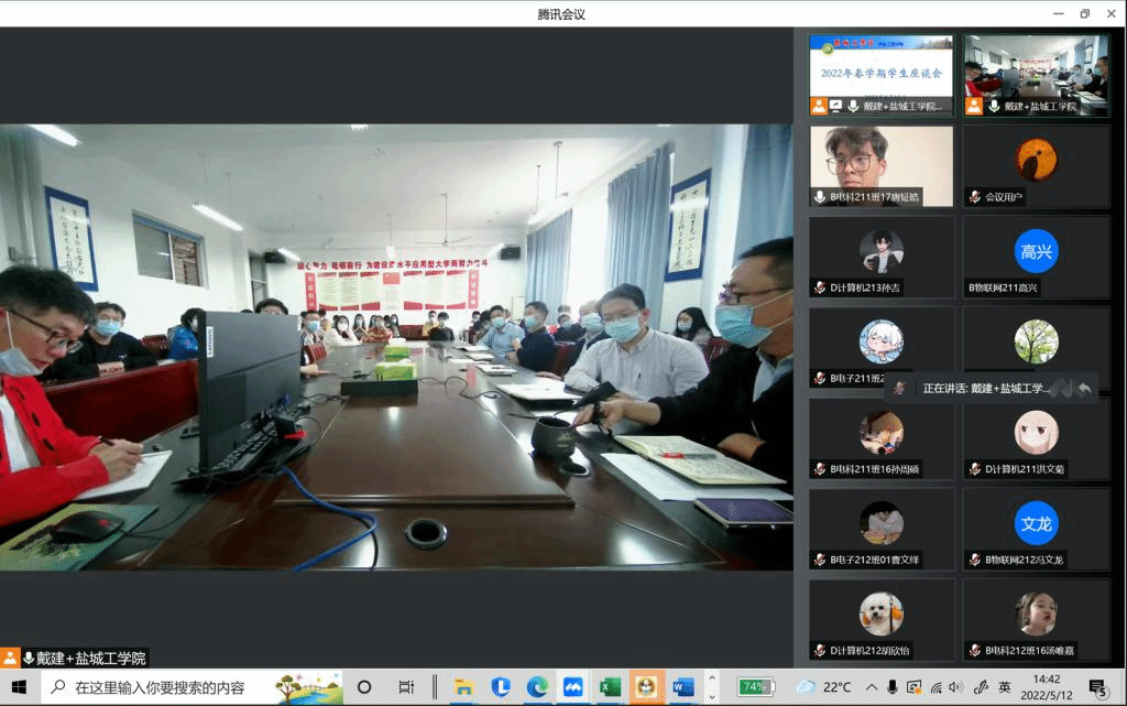 5月12日下午,信息学院于怀德楼B410会议室召开2022年春学期学生座谈会,学院班子全体成员与学院各年级各专业40余名学生代表通过线上、线下方式共同交流本学期学习、生活等情况。会议由学院院长助理周锋主持。