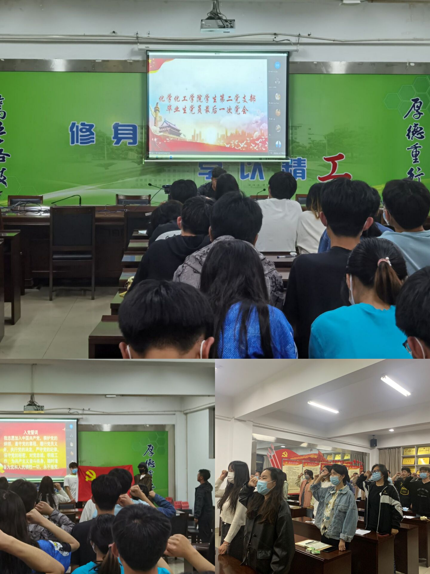 在毕业生党员离校之际,为进一步增强毕业生党员的使命感和履行党员义务的自觉性,5月18日和5月19日晚,化学化工学院学生第一党支部和学生第二党支部在学院201会议室分别开展2022届毕业生党员党课活动,本次党课分别由学生第一党支部书记唐智和学生第二党支部书记王灿星主讲,支部所有党员同志参加。