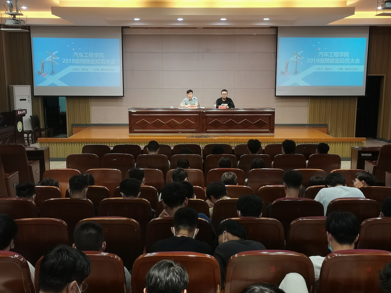 6月6日晚,汽车工程学院在南校区机械馆报告厅召开2023届毕业生预就业动员大会。院长助理郑竹安做动员讲话,专业系教师、辅导员及预就业相关班级学生参加了会议。