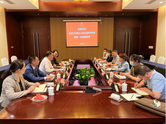 为了进一步深化产教融合,推进校企协同育人和学院就业工作高质量发展,6月14日下午,人文社会科学学院院长周晓燕、党总支书记何登溢、党总支副书记姚爱华和相关专业教师一行6人赴盐城迎宾馆和盐城驿都金陵大酒店开展调研交流活动。盐城迎宾馆党总支副书记仓群和盐城驿都金陵大酒店总经理封光雄等领导热情接待。