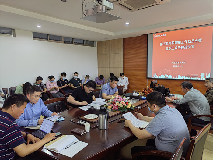 6月15日下午,产业技术研究院在北校区知达楼AE209会议室召开第五轮岗位聘任工作动员会暨教职工政治理论学习会。院党总支书记、院长张勤芳主持会议,研究院全体教职工参加。