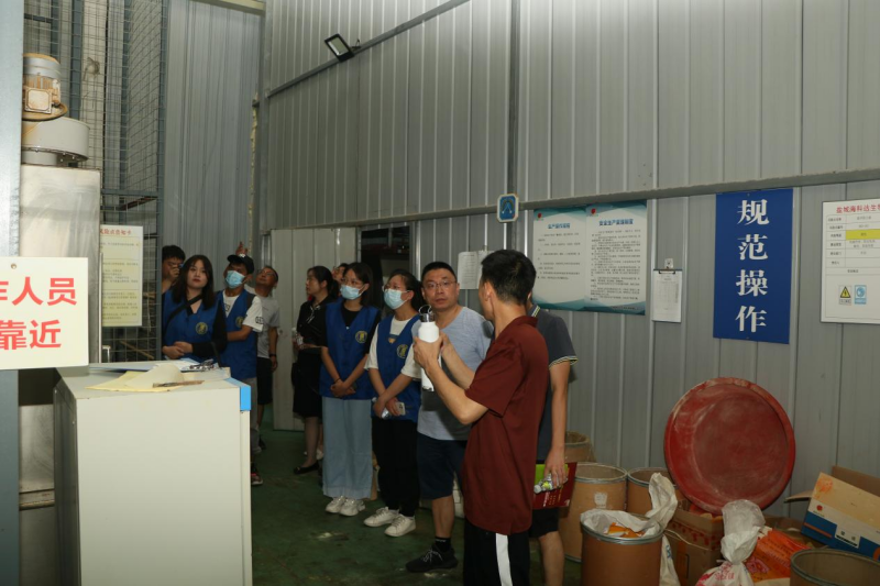 社会实践团队通过座谈讨论、实地参观等形式了解该企业经营业务、生产车间以及招聘需求等。公司执行董事郭正大讲解了目前公司的经营范围包括专业研发、生产、销售水产养殖饲料添加剂等动物保健品,老师们也就该企业的业务进行深度的研讨。郭正大还带领师生参观了具有一定规模的饲料生产车间、观察水产养殖饲料成品,培养的菌种如光合细菌、乳酸菌等,繁殖菌种的机器,实验室等。这让原来迷茫自己未来工作的同学们加深了对生产技术和生产车间内部结构的进一步的了解。老师们还就水产养殖的菌种培养问题跟相关负责人进行讨论,例如对存放菌种的瓶身进行改良同时替换瓶盖,优化了从前培养菌种的方案从而提高了菌种繁殖的成功率。